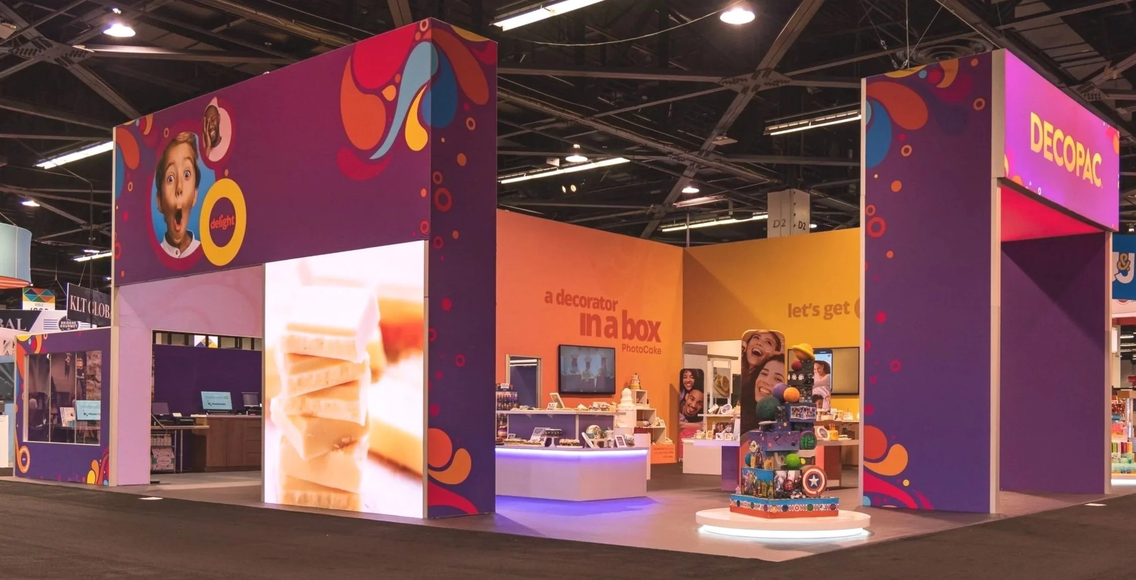 A modular fabric-panel booth system designed for maximum flexibility and cost efficiency. The structure features interchangeable panels, adaptable layouts, and editable screen zones that allowed for seamless yearly updates without the expense of full redesigns. This strategic approach not only elevated the brand’s presence year after year, but also earned industry awards for innovation and design excellence.